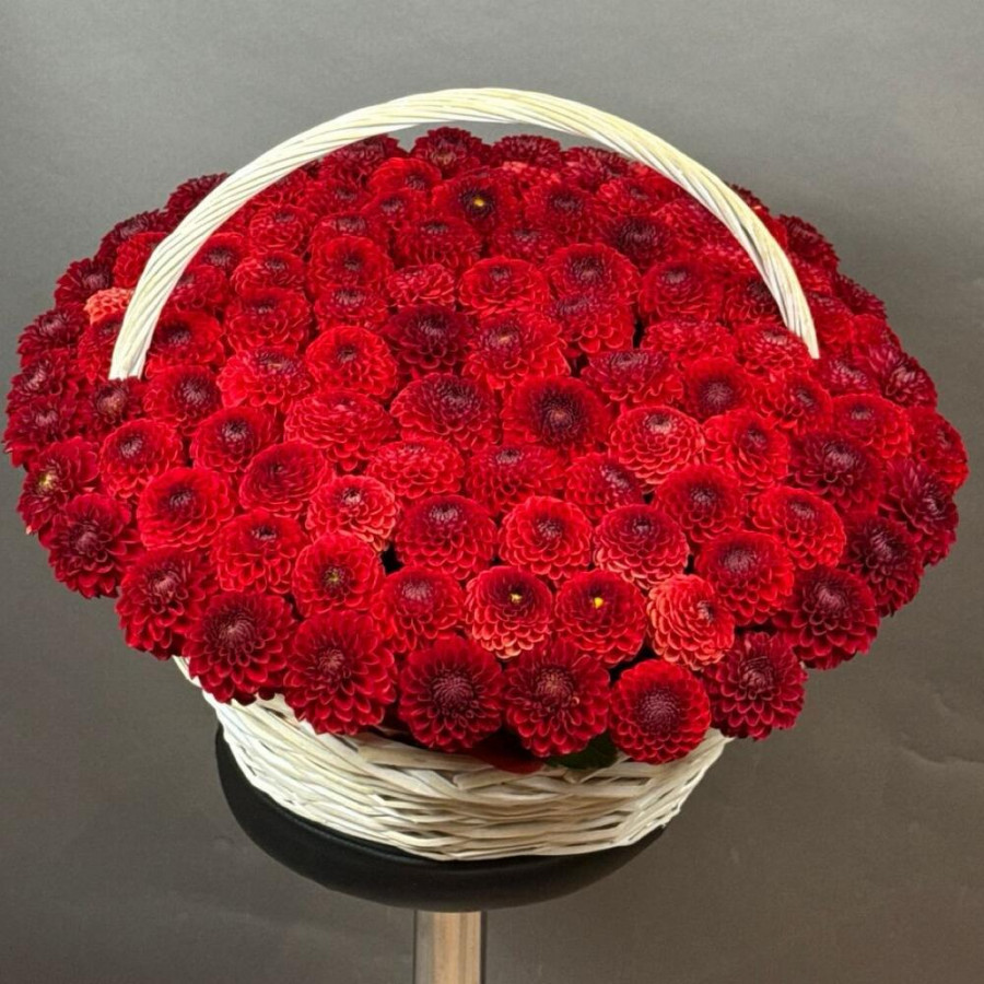 Композиция из 101 красной георгины в корзине в Северодвинске