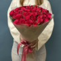 На фото букет из 41 малиновой розы. В составе: роза 41 шт, дизайнерская упаковка 2 шт, атласная лента 1 шт, . Все цветы свежие и ароматные, букет красиво оформлен и отлично подходит для подарка. Доступна доставка цветов или самовывоз.