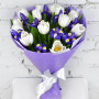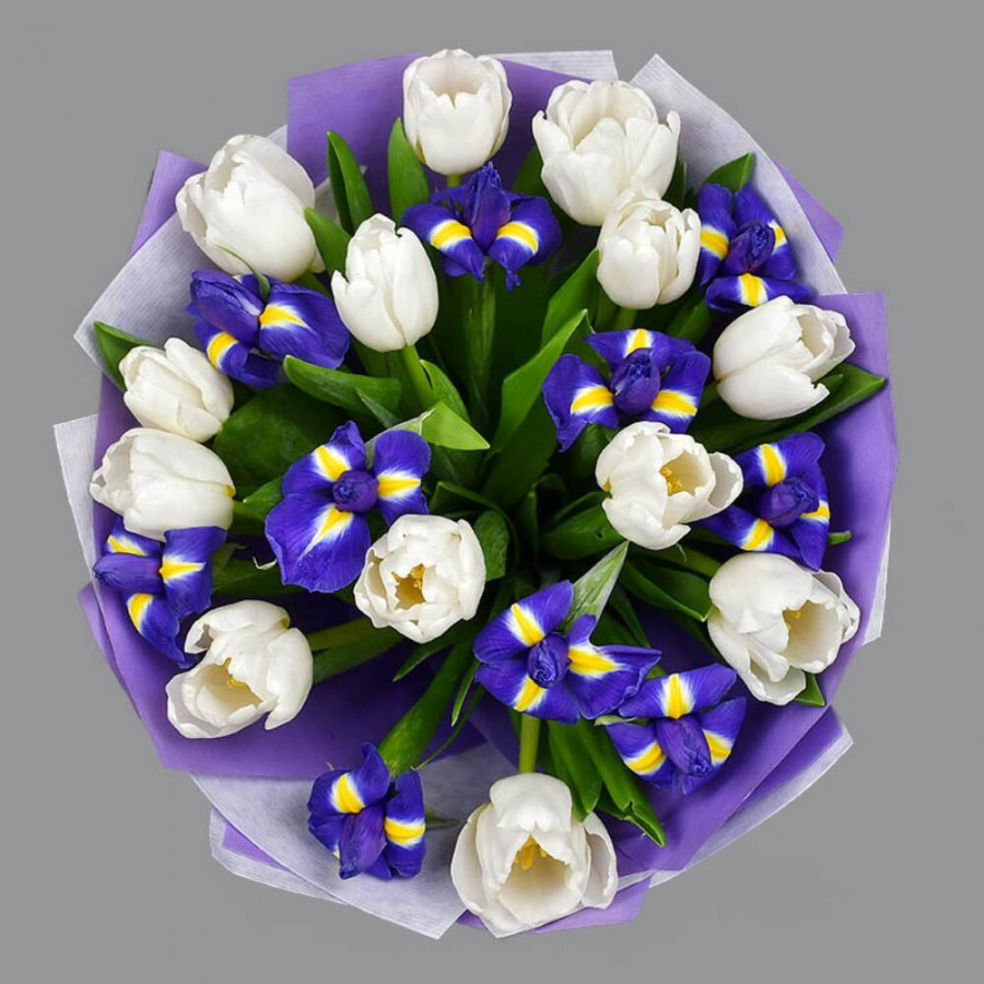 Букет из синих ирисов и белых тюльпанов в Северодвинске
