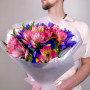 Букет из синих ирисов из розовых альстромерий в Северодвинске