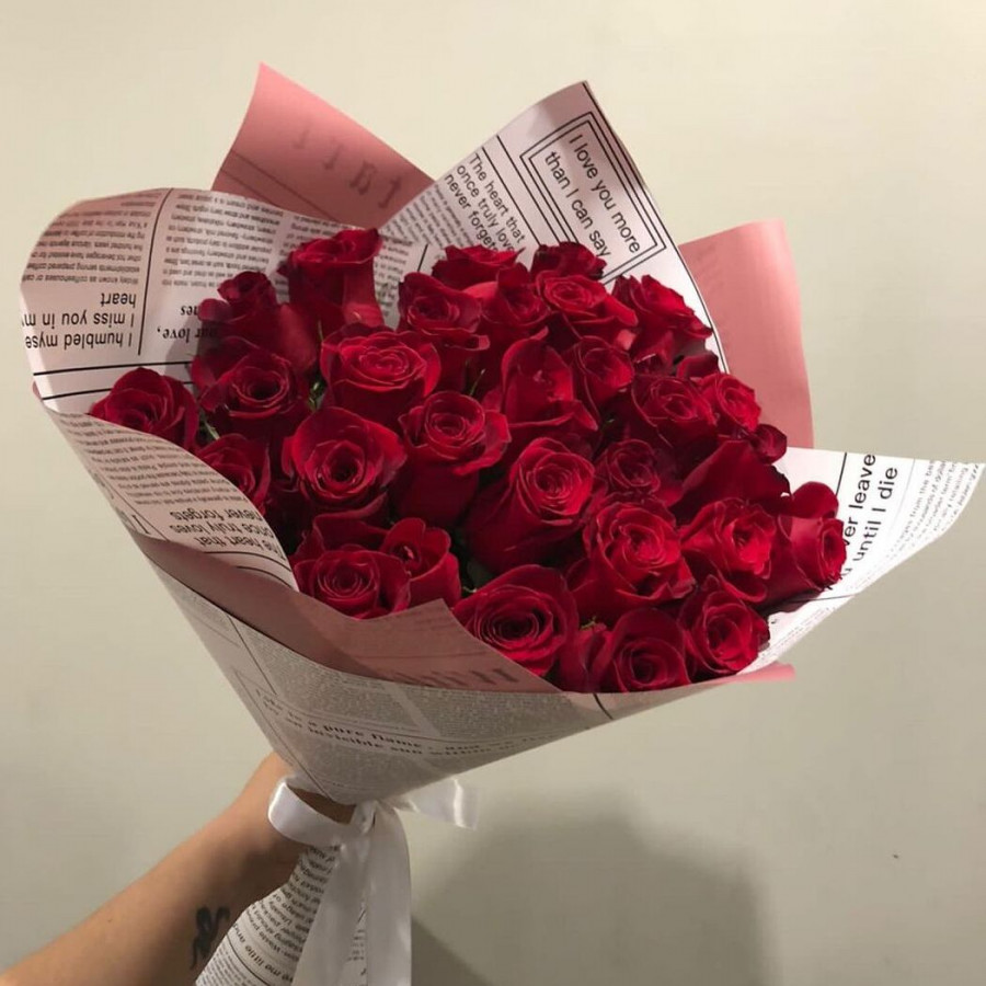 На фото красные розы в крафте. В составе: роза 29 шт, крафт-бумага 1 шт, атласная лента 1 шт, . Все цветы свежие и ароматные, букет красиво оформлен и отлично подходит для подарка. Доступна доставка цветов или самовывоз.